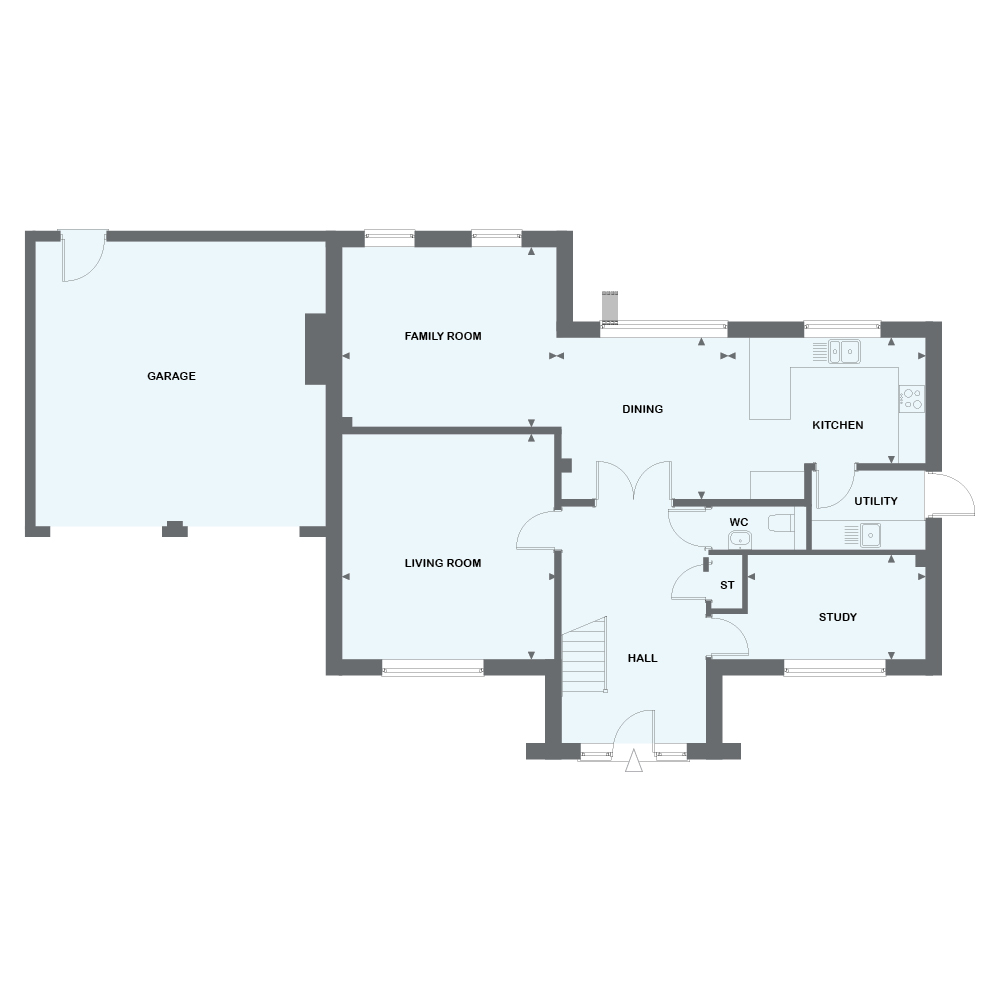 - LED down lights in kitchen, utility, all bathrooms, en-suites and cloakrooms