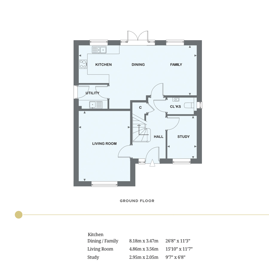 - LED down lights in kitchen, utility, all bathrooms and cloakrooms